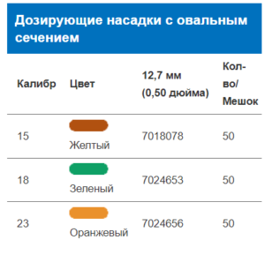 Втулки насадок имеют цветовую кодировку, обозначающую размер, для удобства определения калибра или внутреннего диаметра. Насадки упакованы в прозрачные коробки для упрощения инвентаризации – номера партий, артикулы и другая информация указаны на бирках для удобства управления процессом и контроля изменений.