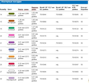 Втулки насадок имеют цветовую кодировку, обозначающую размер, для удобства определения калибра или внутреннего диаметра. Насадки упакованы в прозрачные коробки для упрощения инвентаризации – номера партий, артикулы и другая информация указаны на бирках для удобства управления процессом и контроля изменений.
