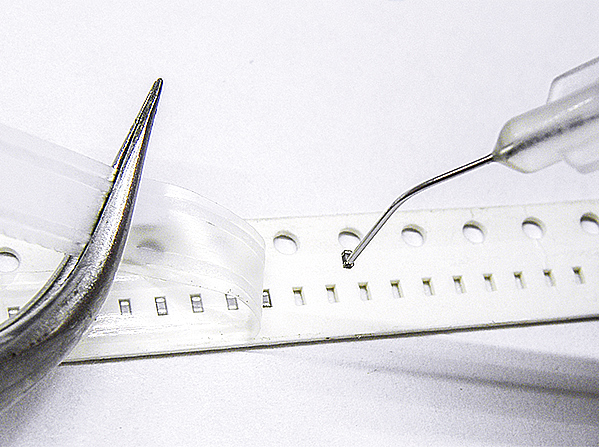 Манипуляция SMD компонентом типоразмера 0402 с габаритами 1 х 0,5 х 0,5 мм