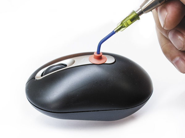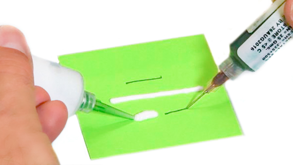 Иногда на одном рабочем месте приходится наносить различные материалы. Например, при монтаже SMD компонентов на рабочем месте может использоваться клей для фиксации компонента на плате, два типа паяльной пасты, а также флюс. Простой пневматический коммутатор облегчает работу с несколькими жидкими материалами, даже если они хранятся в шприцах разного объема.