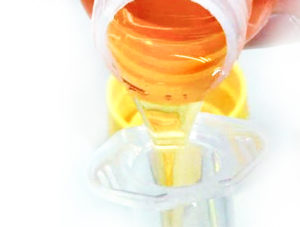 Более вязкие жидкости можно заливать в шприц через широкую горловину.